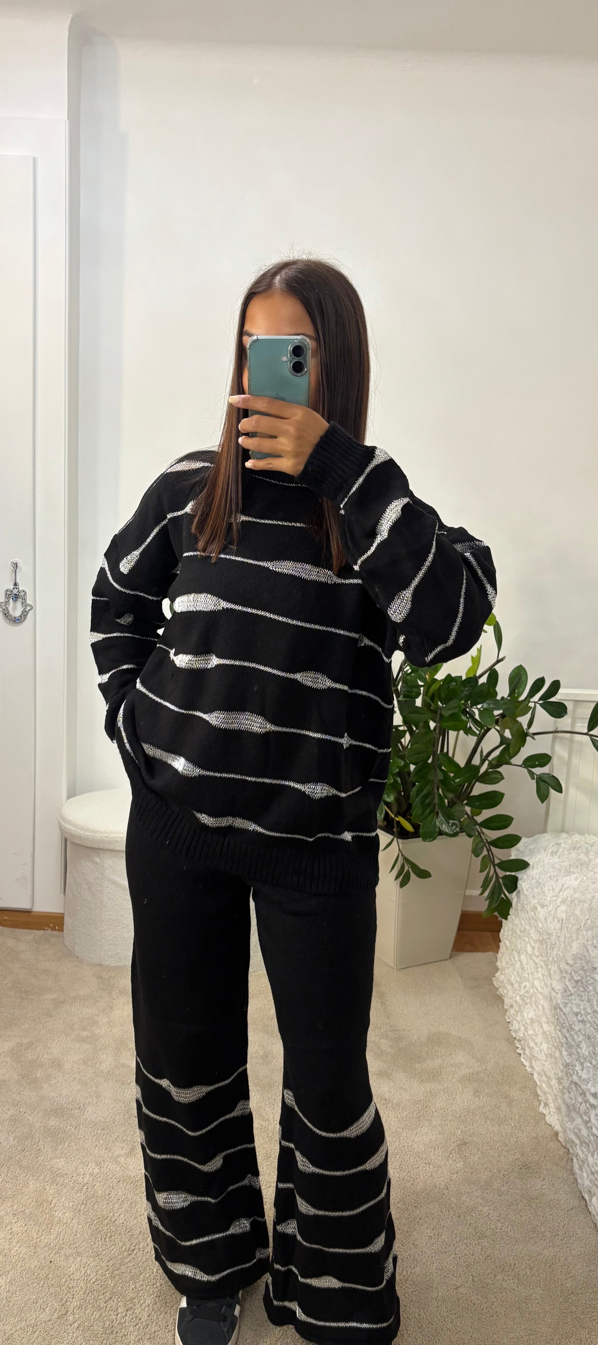 - La maille de cet ensemble est délicate et peut s’accrocher facilement. Nous te recommandons de le laver à la main à l’eau froide, sans essorage en machine, puis de le faire sécher à plat